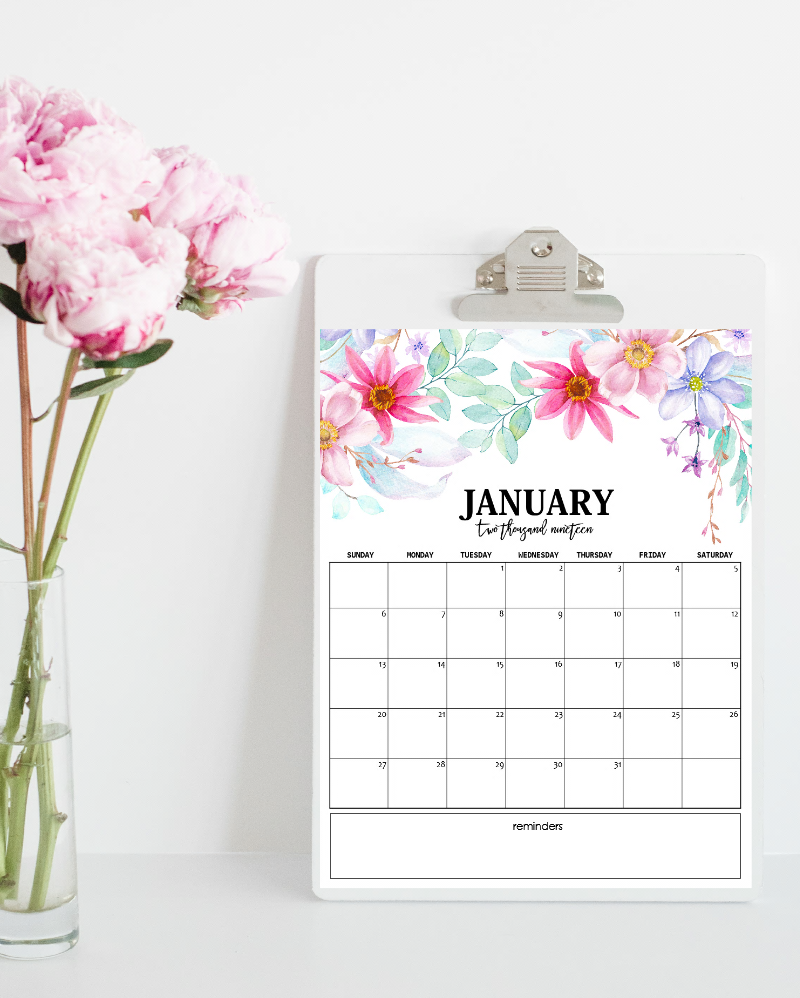 Printable 2019 Calendar in Beautiful Florals!